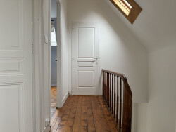 Au deuxième étage : un couloir dessert une salle de douche, deux belles chambres et un wc