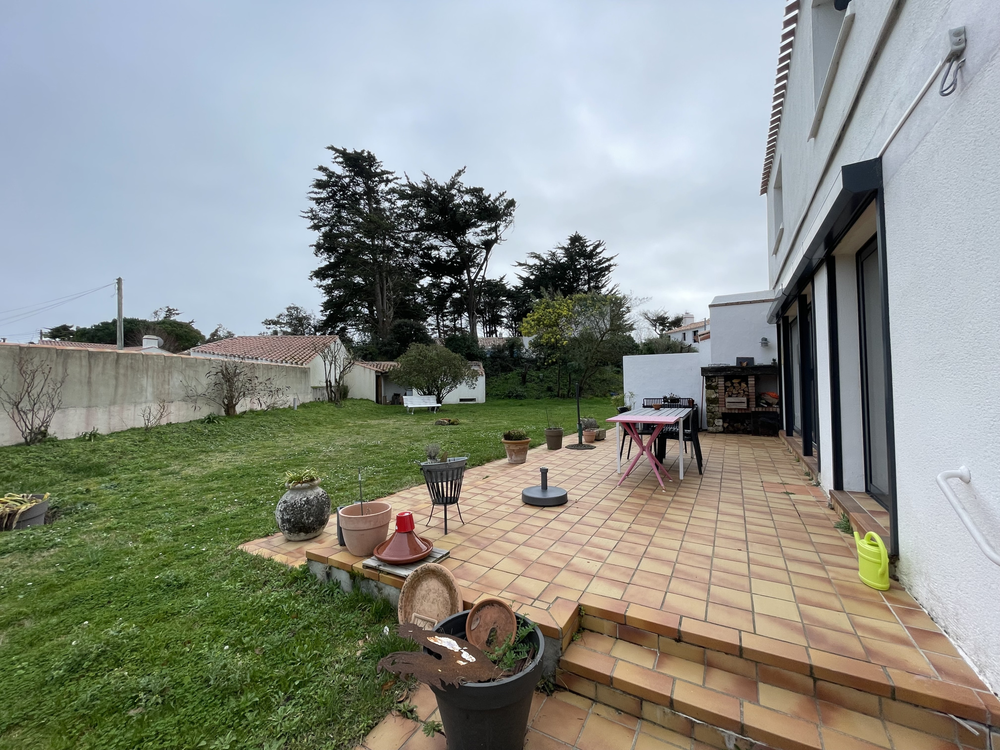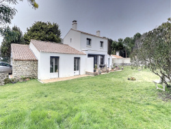 En fond d'impasse, à seulement quelques mètres de la plage... Maison d'une superficie habitable d'environ 157 m2 offrant 4 chambres (2 à l'étage), 2 SDE/SDB, une belle pièce de vie avec une grande cheminée, une cuisine aménagée et équipée, cellier, buanderie, grand garage...
