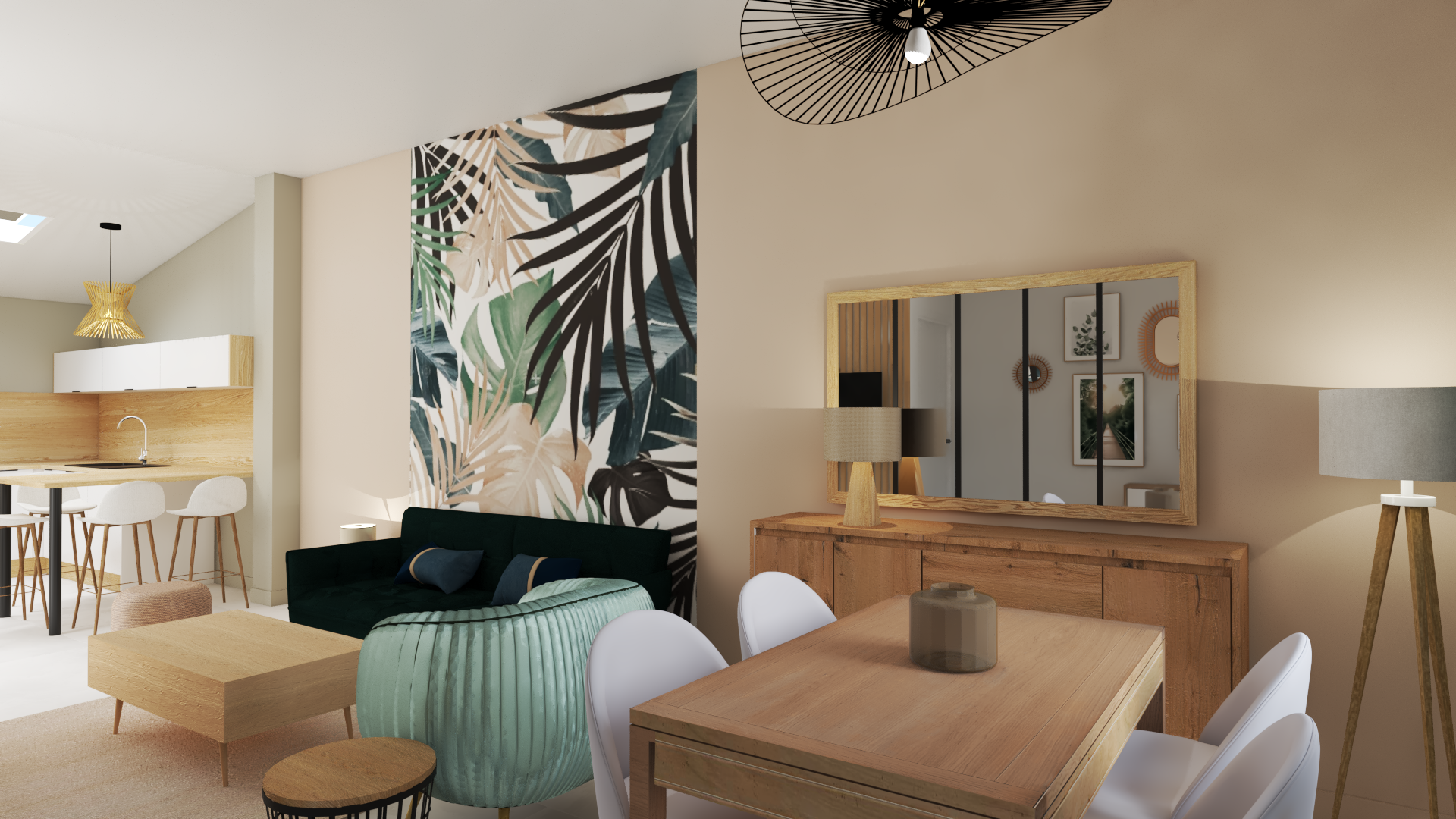 En entrant dans la maison vous trouverez à l'entrée, un joli salon/séjour lumineux, de 35m2 une grande cuisine équipée et aménagée ainsi qu'une salle de douche à l'italienne et un WC.