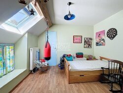 A l'étage : Palier desservant quatre chambres dont une avec point d'eau et un WC séparé avec lave mains. Vous bénéficierez également d'un terrain clos de 530 m² avec terrasse, portail manuel et parking extérieur. Le terrain est complété par un puits, un garage, un atelier ainsi qu'une chaufferie.