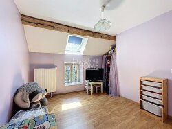 A l'étage : Palier desservant quatre chambres dont une avec point d'eau et un WC séparé avec lave mains. Vous bénéficierez également d'un terrain clos de 530 m² avec terrasse, portail manuel et parking extérieur. Le terrain est complété par un puits, un garage, un atelier ainsi qu'une chaufferie.