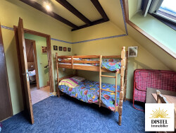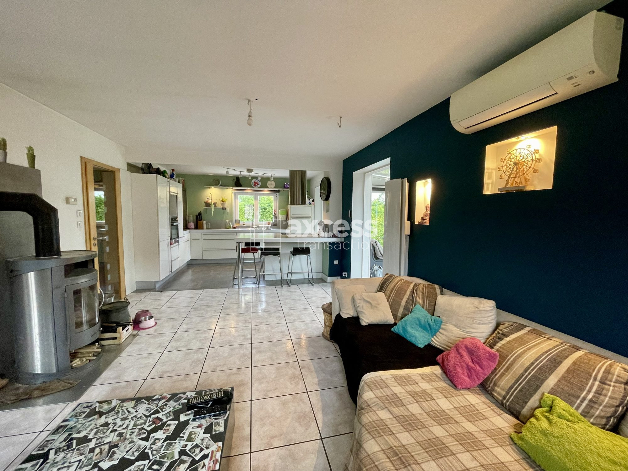 Belle maison érigée en 1986, vous offrant un vaste séjour (env.32m²), une cuisine séparée et des toilettes. Accès terrasse depuis le séjour et la cuisine. En demi niveau il y a une chambre de belle surface (env. 14m²hab/18m²sol) donnant accès au balcon et à l'étage, 3 chambres supplémentaires, une salle d'eau et des toilettes. Espace bureau ou dressing envisageable. Le sous-sol offre divers espaces de rangements, une chaufferie et un atelier. Garage attenant. A l'arrière de la maison, la terrasse et le jardin vous permettent de profiter pleinement des belles journées estivales.