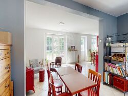 Deux chambres se trouvent également au rez-de-chaussée, idéales pour une vie de plain-pied ou pour accueillir famille et invités. S'ajoutent à cela un bureau discret, une ravissante bibliothèque sur mesure, une salle de bains ainsi qu'un WC indépendant.</p><p style="text-align:start;">À l'étage, l'escalier mène à une superbe mezzanine offrant de nombreuses possibilités d'aménagement : espace détente, coin lecture, atelier ou salle de jeux selon vos envies. Deux autres chambres lumineuses complètent cet étage, chacune bénéficiant de sa propre salle d'eau. Un second WC indépendant est également présent.</p><p style="text-align:start;">La propriété dispose en outre d'un garage avec porte électrique, d'une dépendance à aménager selon vos projets, et d'un puits entièrement fonctionnel. Le Diagnostic de Performance Énergétique (DPE) est classé en D.</p><p style="text-align:start;">Dans un écrin de verdure, à l'abri des regards et du bruit, cette longère représente un bien rare sur le secteur. Elle séduira les amateurs de quiétude, de cachet et de confort, que ce soit pour une résidence principale ou une maison de campagne élégante.</p><p style="margin-left:0px;">Pour découvrir ce lieu unique, contactez-moi dès aujourd'hui !
