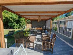 Jolie maison rénovée de 150 M² comprenant un salon/séjour avec son poêle à bois, cuisine aménagée, 4 chambres dont une suite parentale, une grande vérandas pouvant servir de salle à manger, une salle de bains avec douche à l'italienne et baignoire d'angle, une buanderie. A l'extérieur, une belle terrasse abritée, un carport pour 3 voitures ou camping-cars, des petites dépendances pour ranger tout le matériel de jardin. Une piscine hors sol et un jardin intimiste agrémentent cette première partie de terrain.