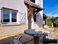 Le RDC propose une cuisine indépendante, un séjour ouvert sur la terrasse exposée ouest, un WC indépendant, une salle d'eau, 1 pièce. A l'étage 4 chambres et 1 salle e bain avec wc. Un garage complète le Bien et une cave. chauffage : chaudière gaz