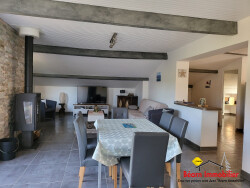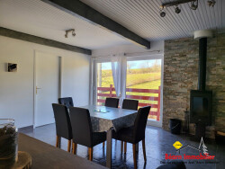Proche du Centre Ville, Maison d'habitation comprenant : Entrée, Dégagement, Séjour/Salon avec poêle à bois donnant sur Terrasse avec store électrique, Cuisine Equipée, 4 Chambres, 1 Salle de Bains, WC. Chaufferie avec Pompe à Chaleur. Appentis. A l'étage, Gîte de type T3 avec son entrée indépendante : Cuisine équipée, Séjour/Salon avec balcon et poêle à bois, 2 Chambres, Salle d'Eau. Double vitrage, Terrain clos et arboré, Vue dégagée sur Campagne.