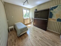 Elle se compose au 1er étage d'une pièce de vie de près de 40 m² avec salon séjour et cuisine ouverte, le tout donnant sur une terrasse et le jardin à l'arrière de la maison, au calme. Viennent ensuite 2 chambres et une salle d'eau récente. Au rez-de-chaussée, vous trouverez une grande entrée, une 3ème chambre de près de 16 m² puis une 4ème chambre et un cabinet de toilette.
