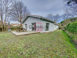 EXCLUSIVITE. L'agence Home 40 Sanguinet vous présente cette agréable maison de 117m2 + 2 garages sur un terrain de 886m2, dans une petite rue calme, dans le centre ville, à proximité du lac et des commerces (accessibles à pieds). Maison construite en 2003 et parfaitement entretenue et modernisée. Elle comprenant une entrée avec placard, un séjour lumineux avec insert, une cuisine aménagée et équipée, 4 chambres dont deux suite parentale avec chacune une salle d'eau attenante, un bureau, une salle de bain avec WC, un WC indépendant avec lave-mains, un cellier, un petit garage attenant isolé et carrelé, un garage indépendant et un cabanon. A l'extérieur, vous profiterez d'un joli jardin arboré et entièrement cloturé, avec forage et arrosage automatique, et portail électrique. Possibilités d'extension très importante et de piscine. Retrouvez plus de photos sur le site internet de l'agence Home 40. Nous vendons régulièrement des biens avant de passer les annonces, n'hésitez pas à nous contacter si vous souhaitez vendre ou acheter un maison. A quelques minutes à pieds de l'école du Pin Vert, à 10km du collège Nelson Mandela de Biscarrosse, à 16km du centre hospitalier Pole Santé de La Teste de Buch, à 20min du Bassin d'Arcachon.