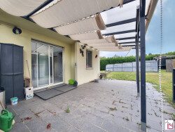 Un aménagement confortable pour toutes les familles avec un RDC comprenant un vaste espace de vie avec cuisine à l'américaine totalement équipée, une première chambre pouvant faire office d'un bureau idéal pour le télétravail (fibre en place), une salle d'eau avec toilettes ainsi qu'un dégagement d'entrée équipée de grands placards muraux. Le séjour donne accès à une terrasse aménagée avec un pergola couvrant la totalité de la surface.