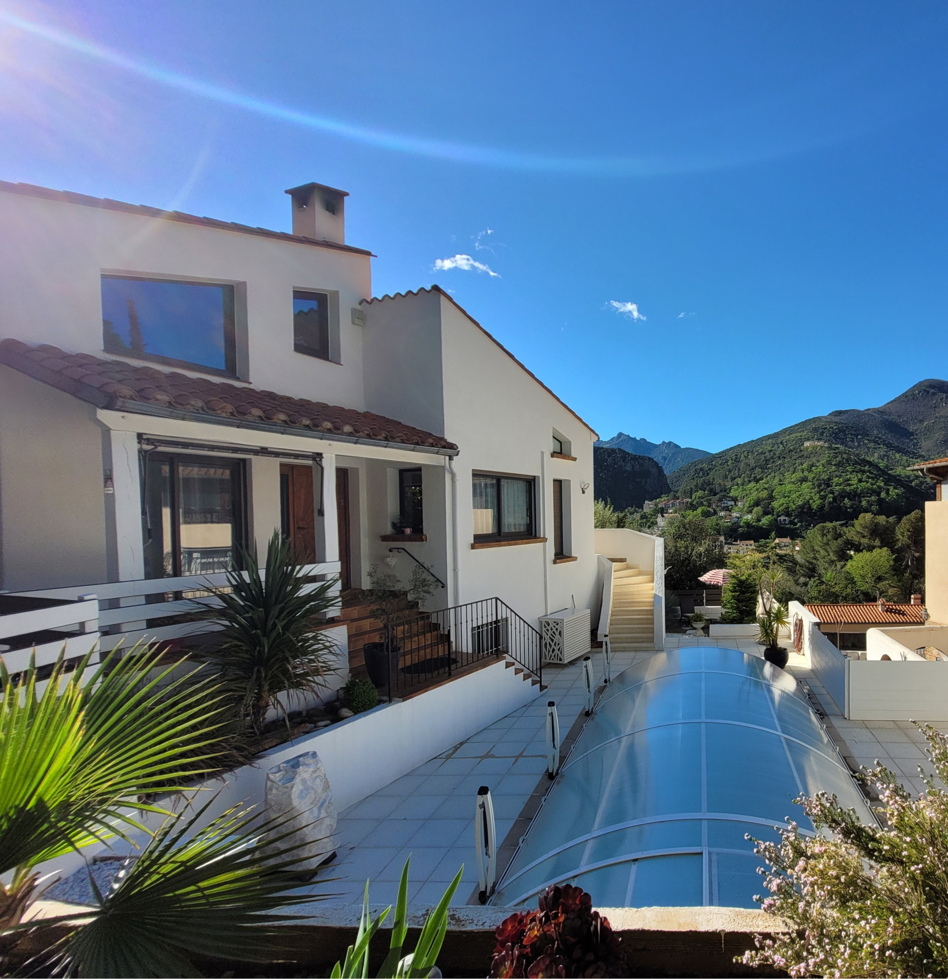 Située dans un environnement agréable, cette maison de construction traditionnelle séduit par la qualité de réalisation et l'excellent état de son intérieur. Aucun travaux n'est à prévoir, tout a été pensé pour le confort et la praticité. La maison principale (164 m2 env.) - Séjour cathédral lumineux avec accès direct à la terrasse - Cuisine équipée - Deux chambres - Suite parentale avec salle d'eau privative - Terrasse avec cuisine d'été, idéale pour les repas conviviaux - Ouverture sur un jardin paysager parfaitement entretenu Appartement indépendant (35 m2 env.) - Actuellement loué 450 EUR/mois, offrant un revenu complémentaire stable - Accès séparé, idéal pour accueillir famille, amis ou activité saisonnière Espaces annexes et dépendances - Deux grands garages (125 m2 env.) - Garage supplémentaire - Bureau (9,34 m2) - Local technique / rangement Confort & prestations - Clim réversible installé dans toutes les pièces - Volets roulants électriques - Menuiseries en double vitrage - Isolation et finitions de qualité Atouts Cette maison 4 faces combine charme, confort et polyvalence. Elle conviendra aussi bien : - A une famille recherchant un cadre de vie agréable et fonctionnel, - A une profession libérale ou un indépendant souhaitant un espace de travail adapté, - A un collectionneur de véhicules ou passionné nécessitant de vastes garages sécurisés. Un bien rare, associant qualité de construction et nombreuses possibilités d'exploitation. « les informations sur les risques auxquels ce bien est exposé sont disponibles sur le site Géorisques : www.georisques.gouv.fr »