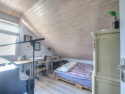 Elle comprend une entrée, une pièce de vie avec cuisine ouverte sur le séjour donnant sur une grande terrasse exposée plein sud, un bureau (chambre) et une salle de douche avec WC.