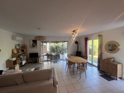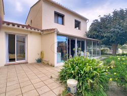 Maison 4 pièces 3 faces sur terrain de 394m2 isolé et climatisé dans quartier Calme à Rivesaltes Localisation : Cette maison est idéalement située dans un quartier calme de Rivesaltes mais à proximité du centre-ville et de tous commerces. Rivesaltes est une ville offrant toutes les commodités entre Perpignan et Narbonne et proche des grands axes routiers. Descriptif du bien : Maison 3 faces de 101m2 se surface habitable plus un grand garage attenant à la maison. Le jardin est piscinable et il y a un forage déclaré. Vous accédez à la maison par l'avancé du garage permettant de stationner une voiture avec un portail ouvrant sur une allée délimitant la maison et le jardin. Au RDC de la maison il y a un grande espace salon, salle à manger cuisine équipée ouvert sur une belle terrasse. Il y a également une première chambre avec sa salle d'eau. Il y a également un premier WC et une buanderie. A l'étage, il y a 2 chambres avec placard et une 2ème salle d'eau avec WC. La maison est entièrement climatisée et isolée avec double vitrage lui conférant un très bon rapport en consommation énergétique de C. Vous disposez également d'un poêle à pelé qui rajoute au confort de la maison. La parcelle du terrain représente 394m2.
