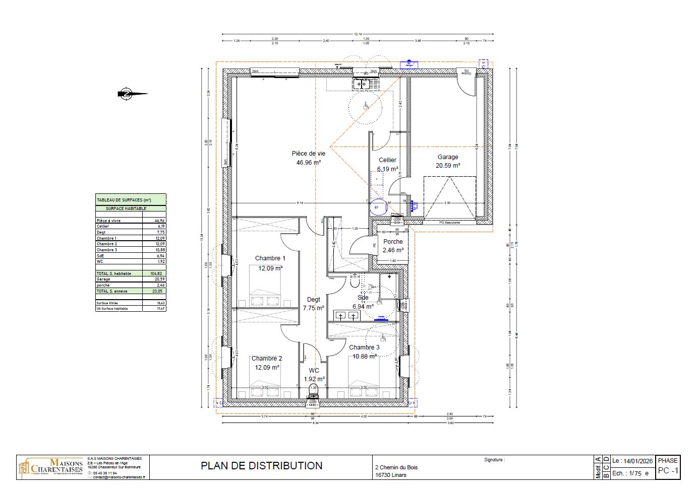 La maison est livrée clef en main (hors cuisine). Elle fait 104m² comporte 3 chambres, dont une suite parentale avec salle d'eau, une salle d'eau commune équipée, un WC indépendant, un cellier, beau séjour lumineux de 48m² avec cuisine ouverte. Un garage Garage attenant. La maison est adaptée aux normes d'accessibilité PMR. Isolation, et étanchéité répondant à la dernière norme RE2020. Chauffage avec pompe à chaleur et split de climatisation chaud/froid. La parcelle fait 1200m², les raccordements réseaux sont convenus dans le prix (eau, elec.,fibre, fosse septique). Paiement du prix intégralement à la fin après réception des travaux. Eligible PTZ. Frais de notaire réduit à 3%. Exonération de Taxe Foncière pendant 2 ans. Pour plus d'informations merci de nous contacter par téléphone ou mail. Photos non contractuelles.