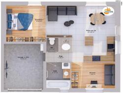 Cette maison de 1 chambre plus un bureau offre une distribution optimisée des pièces. Ce plan compact et fonctionnel a été pensé pour faciliter l'accès à la propriété avec un budget maîtrisé.
