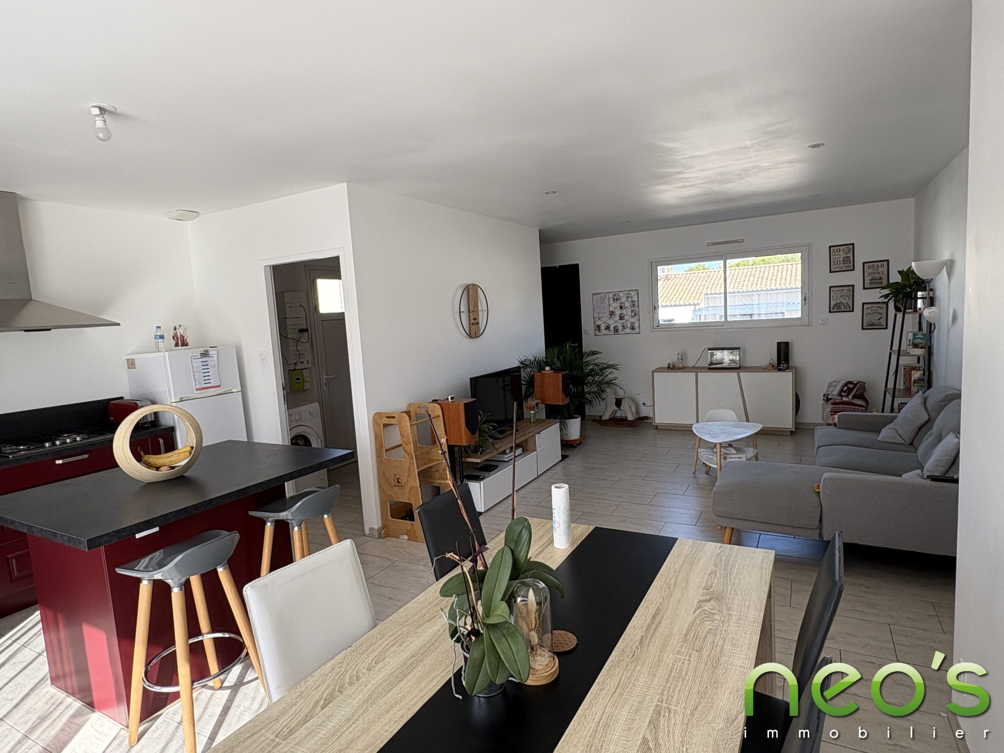 ? Lumineuse avec cuisine ouverte donnant sur son jardin.