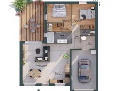 Cette maison de 2 chambres offre une distribution optimisée des pièces sur une superficie de 74 m² habitable. Elle propose une pièce de vie de 29 m² évolutive selon vos besoins et vos souhaits.