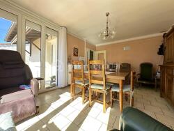 Détail des prestations : un séjour exposé plein sud, une cuisine séparée (aménagée et équipée), une arrière-cuisine/buanderie, trois chambres d'environ 10,5m2, une salle d'eau, un wc séparé, une véranda (non chauffée), terrasses, jardin. Un premier garage (attenant de 14m2) et un second en fond de parcelle (40m2) complètent les prestations de qualité de cette maison.
