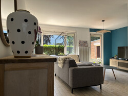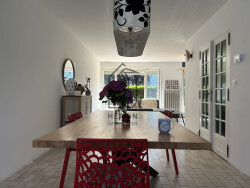 d'un vaste hall d'entrée avec WC et vestiaire, d'une cuisine neuve de qualité avec plan de travail en granit et d'un séjour - salle à manger d'environ 40 m².