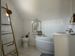 L'étage dessert 3 belles chambres lumineuses d'environ 10 m² chacune, d'une salle de bain (cabine de douche + baignoire) et d'une petite pièce de rangement. (possibilité d'aménager une quatrième chambre dans les combles).