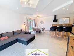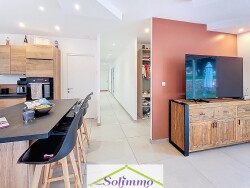 À VENDRE Villa de plain-pied LES ABRETS-EN-DAUPHINÉ (38490) Située dans un secteur résidentiel calme et recherché, cette villa de plain-pied construite en 2021 bénéficie encore de la garantie décennale. À proximité immédiate des écoles et des commodités, elle offre un cadre de vie idéal pour une famille souhaitant allier confort moderne et tranquillité. Surface & agencement : Surface habitable : 96 m² Garage attenant : 20 m² Terrain clos et facile dentretien : 508 m² Descriptif du bien : Pièce de vie spacieuse et lumineuse avec cuisine ouverte équipée et îlot central Accès direct à une terrasse de 50 m² exposée sud-ouest Trois chambres dont une suite parentale avec salle deau privative et dressing Salle de bains avec baignoire WC indépendants Cellier fonctionnel attenant à la cuisine Prestations & équipements : Pompe à chaleur avec dalle chauffante Volets roulants électriques Menuiseries en double vitrage Adoucisseur deau Localisation stratégique : À seulement 30 minutes de Chambéry et 45 minutes de Grenoble, cette maison offre un compromis parfait entre vie paisible et accessibilité aux grands pôles urbains. Bien récent, parfaitement entretenu, aucuns travaux à prévoir. Pour tout renseignement complémentaire ou organiser une visite, merci de contacter Mme Santiago au 06 51 35 04 46