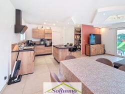 À VENDRE Villa de plain-pied LES ABRETS-EN-DAUPHINÉ (38490) Située dans un secteur résidentiel calme et recherché, cette villa de plain-pied construite en 2021 bénéficie encore de la garantie décennale. À proximité immédiate des écoles et des commodités, elle offre un cadre de vie idéal pour une famille souhaitant allier confort moderne et tranquillité. Surface & agencement : Surface habitable : 96 m² Garage attenant : 20 m² Terrain clos et facile dentretien : 508 m² Descriptif du bien : Pièce de vie spacieuse et lumineuse avec cuisine ouverte équipée et îlot central Accès direct à une terrasse de 50 m² exposée sud-ouest Trois chambres dont une suite parentale avec salle deau privative et dressing Salle de bains avec baignoire WC indépendants Cellier fonctionnel attenant à la cuisine Prestations & équipements : Pompe à chaleur avec dalle chauffante Volets roulants électriques Menuiseries en double vitrage Adoucisseur deau Localisation stratégique : À seulement 30 minutes de Chambéry et 45 minutes de Grenoble, cette maison offre un compromis parfait entre vie paisible et accessibilité aux grands pôles urbains. Bien récent, parfaitement entretenu, aucuns travaux à prévoir. Pour tout renseignement complémentaire ou organiser une visite, merci de contacter Mme Santiago au 06 51 35 04 46