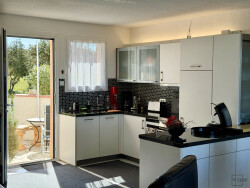 Emplacement de rêve pour cette très belle maison 4 pièces en angle, située sur les hauteurs de Saint-Pierre-la-Mer, offrant plusieurs espaces extérieurs pour profiter pleinement d'une magnifique vue sur la mer ainsi que sur le site protégé de «La Clape». -La maison se compose, au rez-de-chaussée, d'un séjour lumineux avec cuisine ouverte donnant accès à la terrasse, d'un accès direct au garage avec portail électrique, ainsi que de WC séparés. -A l'étage, un couloir dessert trois chambres, chacune équipée de placards, ainsi qu'une belle salle d'eau avec WC. Les prestations et les finitions sont de très haut niveau. La maison est vendue entièrement équipée et meublée : il ne vous reste plus qu'à poser vos valises et profiter.