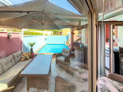Nichée dans les hauteurs du très recherché quartier de Valcros à La Londe-les-Maures, à proximité immédiate du célèbre golf, cette charmante maison de quatre pièces offre un cadre de vie rare, alliant calme absolu, nature et panorama d'exception. Implantée sur une parcelle arborée de 284 m² exposée plein sud, sans aucun vis-à-vis, elle profite d'une magnifique vue dégagée sur la mer et les collines environnantes, avec notamment un bel olivier qui confère au jardin une atmosphère méditerranéenne pleine de charme.