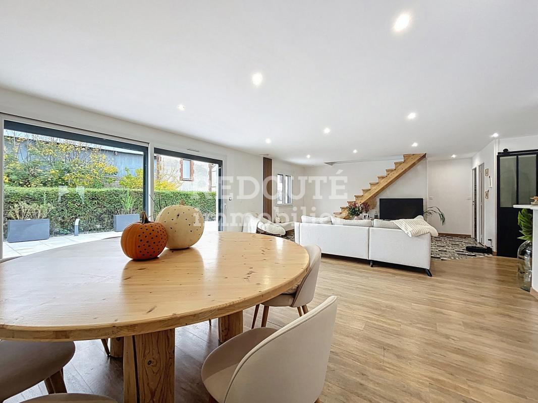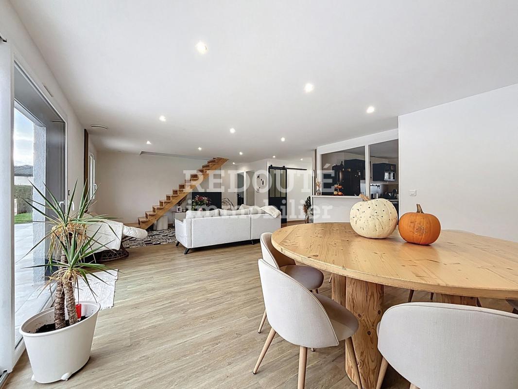 Au rez-de-chaussée, vous serez séduits par une cuisine spacieuse et lumineuse, entièrement refaite à neuf, qui s'ouvre sur un vaste salon-séjour avec accès direct à la terrasse. Une arrière-cuisine pratique et un WC séparé complètent ce niveau.