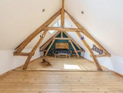 - De très beaux volumes et charpente apparente,