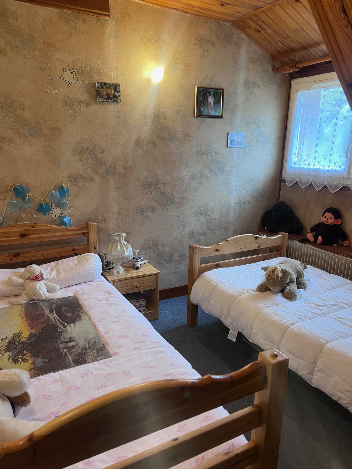 À l'étage, un palier dessert trois chambres lumineuses.