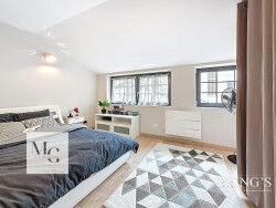 À l'étage, se trouvent deux chambres : l'une de 11 m2, l'autre de 14m2 avec dressing. Une salle de bains équipée d'une baignoir et d'une douche, un WC séparé avec lave-mains.