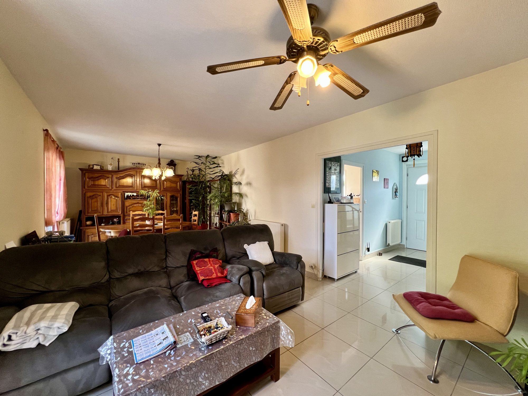 Découvrez cette magnifique maison plain-pied de 140 m² à Tignieu-Village, construite en 2010, située sur un terrain de 600 m². Partiellement meublée, elle offre 4 pièces lumineuses, dont 3 chambres et une salle de bains moderne. La cuisine, aménagée et équipée, est indépendante, et le WC est indépendant. Vous apprécierez les 2 terrasses, le jardin verdoyant et les 2 places de stationnement intérieures et extérieures. La maison est en excellent état, avec une isolation périphérique et des combles, des ouvertures en PVC et des portes à double vitrage. Le chauffage individuel et l'assainissement conforme garantissent un confort optimal. Le terrain est piscinable, idéal pour les journées d'été. À proximité, vous trouverez plusieurs bus à 5 minutes à pied, un collège et un restaurant à 10 minutes à pied, plusieurs hôpitaux en voiture, un parc et jardin à 5 minutes en voiture et la maison est éligible à la fibre.