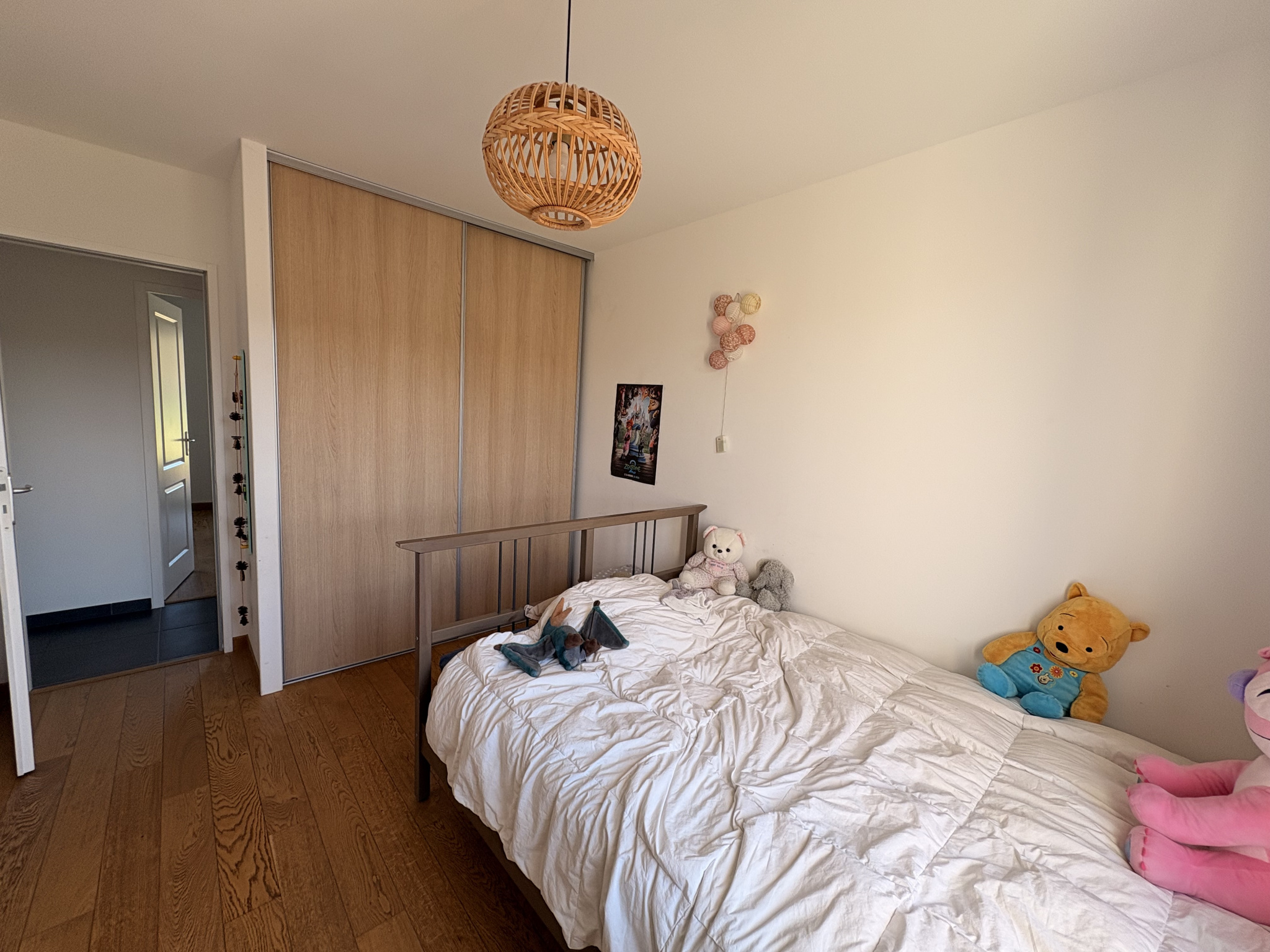 Elle est composée d'une entrée, un salon séjour avec alcôve, grande cuisine dinatoire équipée, deux chambres, une chambre parentale sur l'arrière avec un petit coin bureau, une salle d'eau, un wc indépendant et un cellier.