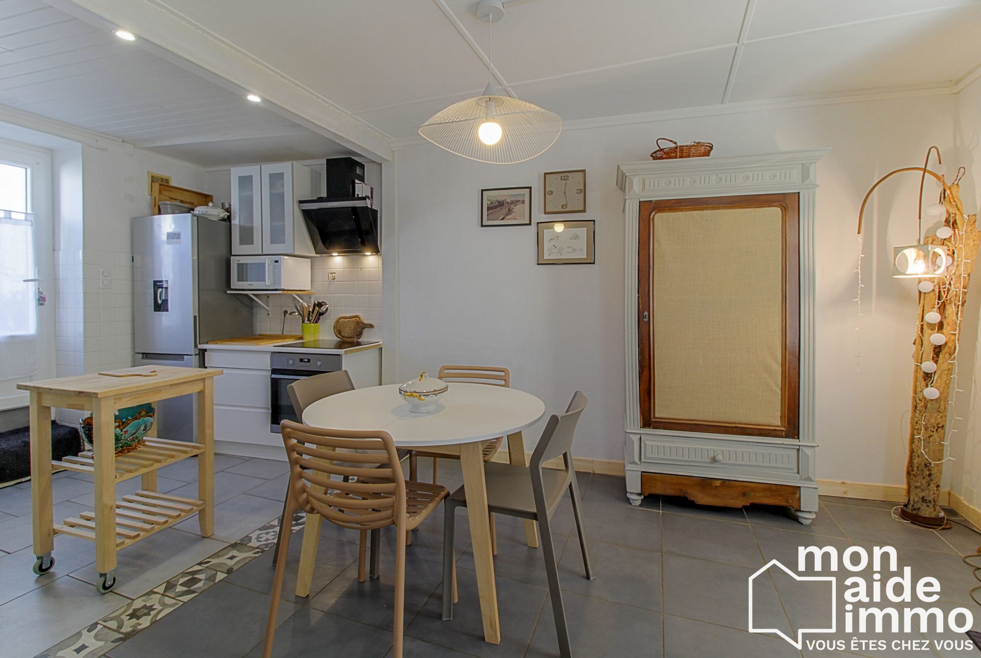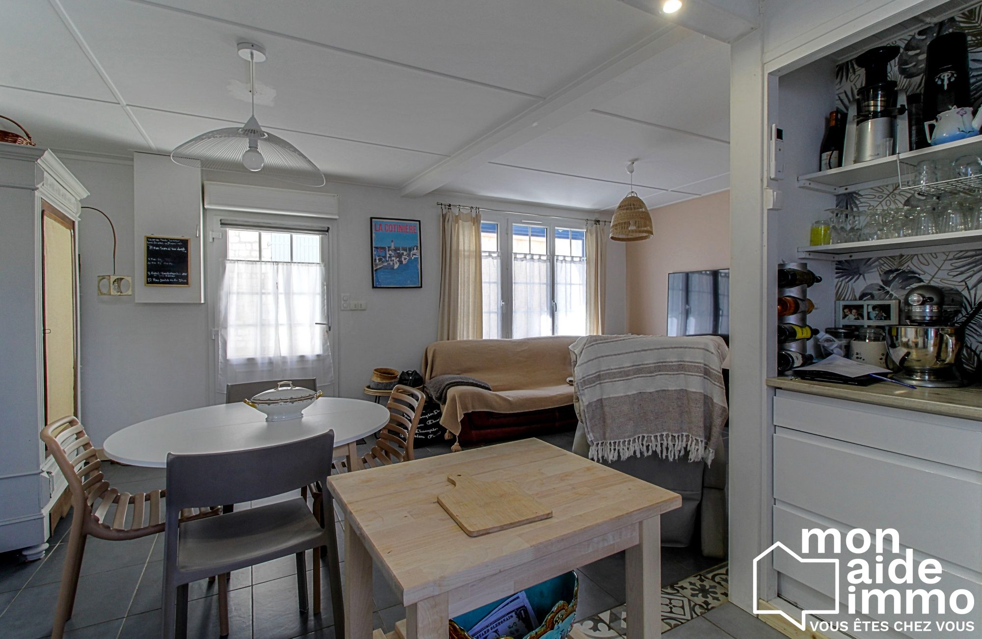 -d'une pièce de vie lumineuse avec cuisine aménagée,