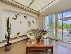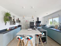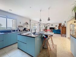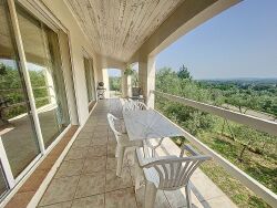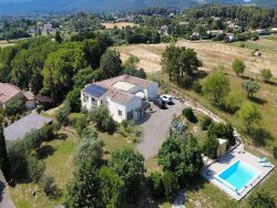 Venez découvrir cette superbe villa construite en 2007 , située dans un environnement calme, sans vis-à-vis, et offrant une vue panoramique imprenable. Avec une surface habitable généreuse de plus de 200 m², cette propriété conjugue parfaitement espace, confort et modernité.</p><p style="text-align:start;">Les atouts de la maison :</p><ul><li>Une vaste pièce de plus <strong>50 m²</strong>à usage multiple : salon de réception, salle de détente ou grande salle de séjour selon vos envies.</li><li>Une cuisine ouverte équipée <strong>neuve</strong>, s'ouvrant sur un séjour lumineux, orienté plein sud, avec accès direct à la terrasse et sa vue dégagée.</li><li><strong>4 belles chambres</strong>, accompagnées d'une salle de bain mixte ainsi qu'une salle d'eau récente.</li><li>Une pièce indépendante avec accès privatif pouvant accueillir une <strong>5ème chambre</strong> ou convenir parfaitement pour une <strong>activité professionnelle</strong> (bureau, profession libérale?).</li><li>Chauffage au sol rafraîchissant, façade neuve, fosse septique aux normes, ballon thermodynamique et panneaux photovoltaïques assurant une performance énergétique optimale.</li><li>Une dépendance de <strong>100 m²</strong> idéale pour un grand garage, un atelier ou du stockage.</li><li><strong>Espace piscine</strong> préservé des regards pour des moments de détente en toute intimité.</li><li>Parcelle de terrain de <strong>3695 m²</strong>, paysagée avec de magnifiques oliviers et disposant d'un puits.</li></ul><p style="text-align:start;">Une villa clé en main, idéale pour une grande famille ou pour un projet de résidence principale avec activité professionnelle le tout dans un cadre de vie idéal !</p><p style="text-align:start;"> </p>