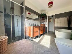 <p>Le rez-de-chaussée s'ouvre sur une vaste entrée menant à une pièce de vie particulièrement lumineuse grâce à ses larges ouvertures. La cuisine, aménagée et équipée, allie fonctionnalité et convivialité. Deux chambres, un dressing, une grande salle de bains comprenant également une douche, ainsi qu'un WC indépendant complètent ce niveau pensée pour un quotidien fluide.</p>