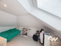 - au rez-de-chaussée : une entrée, un couloir, 2 pièces (chambre/bureau) dont une avec un accès sur le jardin - au premier étage : un dégagement, un salon-séjour, une cuisine équipée avec loggia, des WC - au deuxième étage : un dégagement, 3 chambres, une salle d'eau avec douche - aux combles : une chambre