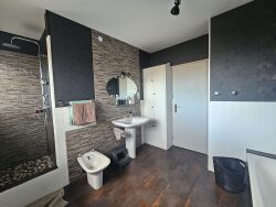 À l'étage, vous trouverez une grande salle de bain avec baignoire et douche, ainsi que trois belles chambres, dont deux disposant de placards muraux intégrés.