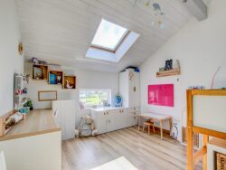 Au deuxième étage : grand dégagement, trois chambres dont une avec salle d'eau, une salle de bain et un WC.