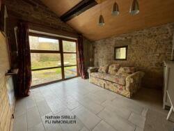 Le terrain plat à l'arrière fait 12 ares. La maison est mitoyenne d'un coté contre une grange inhabitée et le terrain a une partie constructible.