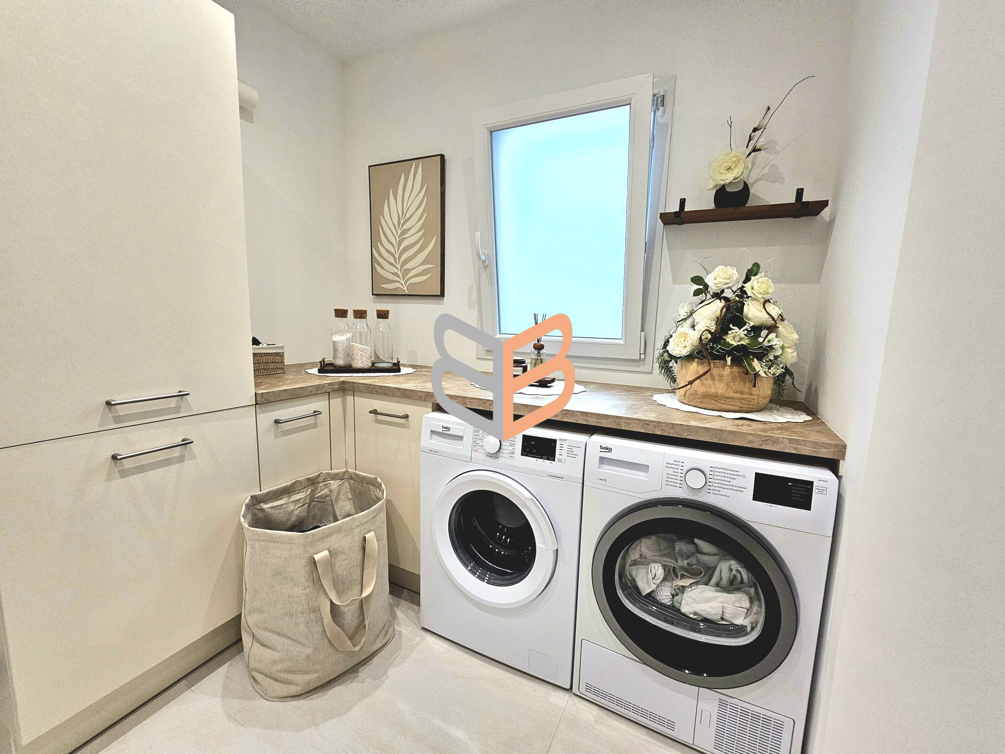 Cette maison mitoyenne d'un côté est composée au rez-de-chaussée d'un spacieux et lumineux double séjour, d'une luxueuse cuisine aménagée et équipée garnie de crédence et plan de travail en granit, une entrée, un cellier et un garage avec un coin buanderie. Le tout, équipé d'un système d'alarme et de vidéosurveillance.