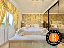 Au premier étage, nous retrouvons trois chambres volumineuses avec des placards intégrés, une salle de bains en marbre avec baignoire en îlot et douche à l'italienne ainsi qu'un WC indépendant.