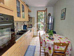 D'espaces de plein pied, composés d'une entrée, d'un séjour traversant Nord-Sud avec cheminée, d'une cuisine meublée et équipée aujourd'hui indépendante mais ouvrable en tout ou partie sur le séjour et d'un coin salon avec espace bureau, facilement transformable en suite parentale avec dressing et/ou salle d'eau (branchements et évacuation en attente). Des toilettes indépendantes et un accès direct au garage complètent ce premier niveau. L'étage vous offre une première chambre orientée Nord et deux chambres au Sud sur les jardins intérieurs, une salle de bain avec baignoire, double vasque et sèche serviette ainsi qu'un second WC indépendant. Le garage est équipé d'arrivés évacuation d'eau pour lave linge-sèche linge, et d'un espace grenier accessible par un escalier motorisé. Les extérieurs ne sont pas en reste avec une aire de stationnement pour 2 à 3 véhicules fermée par un portal électrique récent. Le terrain plat et piscinable comporte différentes terrasses dont la principale orientée plein Sud est accessible depuis la cuisine et le séjour.