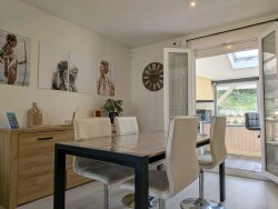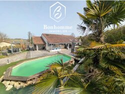 Maison 5 pièces - 110 m² LANGOIRAN LANGOIRAN - 33550 Sur les hauteurs, proximité des écoles et des MAM / 30 minutes de Bordeaux Centre / 20 minutes Rocade Cette maison orientée est- ouest se compose d? une entrée avec rangements, un grand séjour salle à manger traversant avec insert et climatisation, 1 cuisine ouverte équipée, 1 véranda, 3 Chambres avec placards, une salle de bain avec douche, baignoire et double vasque, WC séparé, un grand cellier. A l?extérieur une parcelle de 915m2 idéalement orientée est - ouest, avec piscine, terrasse, auvent pour déjeuner à l?ombre, un barbecue, un grand abri de jardin pour les vélos, moto et le bois, et un boulodrome et un atelier pour vos outils. L?environnement est calme, la vue dégagée. La maison est raccordée au tout à l'égout. Mentions Loi Alur : - Statut du négociateur : Agent Immobilier OU Agent Commercial - Prix HAI TTC de 285 000 ? - Honoraires charge : vendeur - Référence annonce : - Date de réalisation du diagnostic énergétique : 09/03/2026 - Consommation énergétique : 169 kWh/m²/an - Emission de gaz à effet de serre : 6 Kg CO2/m²/an - Montant estimé des dépenses annuelles pour un usage standard : entre 1370 ? et 1920 ? / an. Prix moyen des énergies indexé sur l?année de référence : - Les informations sur les risques auxquels ce bien est exposé sont disponibles sur le site Géorisques : georisques.gouv.fr