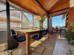 Un jardin arboré et clôturé, une terrasse en bois avec pergola à l'abri des regards. Une cour permettant de stationner 5 véhicules.