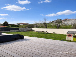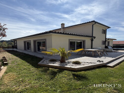 Secteur calme, venez découvrir cette belle villa sur une parcelle de 800 m². Avec ses 128 m² de surface habitable, cette villa se déploie sur deux niveaux offrant un agencement pensé pour le bien-être et la convivialité. Vous serez séduit par son salon/séjour spacieux sur cuisine ouverte donnant sur deux belles terrasses pour recevoir vos proches ou profiter de moments de détente en famille. Le poêle à granulés, symbole de chaleur et de convivialité, ajoute une touche d'élégance. Les matériaux nobles comme le sol en marbre et le mur en pierre apparente apportent une touche de caractère et de raffinement. Vous disposerez de quatre chambres dont une suite parentale avec balcon, d'une salle de bain, d'un wc indépendant et d'une buanderie. Huisseries pvc avec volets roulants. La villa dispose également d'un grand garage motorisé pouvant accueillir deux véhicules.