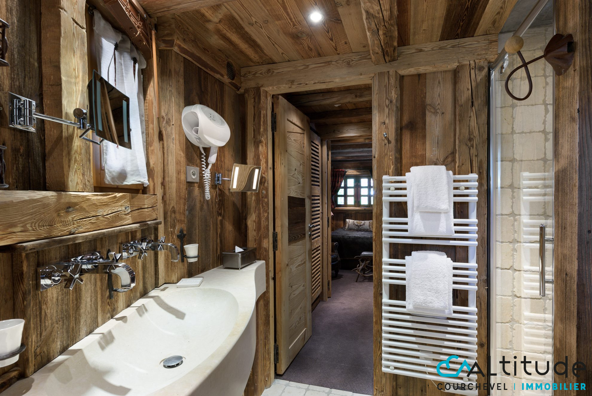 Rare à la vente ! Située à Courchevel, dans un environnement privé et calme, ce chalet individuel de type 5 offre une surface habitable d'environ 150.06 m2, exposée plein sud avec jardin, au pied des pistes. Édifiée sur un terrain de 518 m2, sans vis-à-vis, elle saura vous séduire par son emplacement privilégié et sa luminosité. Elle se compose de trois niveaux : Rez-de-chaussée : Un hall d'entrée avec rangement, une grande buanderie, un local technique, un coin bureau, ainsi qu'une suite parentale avec dressing, salle d'eau et WC. 1er étage : Une cuisine ouverte sur le salon-séjour, donnant accès à une terrasse qui mène au jardin et aux pistes de ski de la station de Courchevel. Vous y trouverez également un WC et une cuisine d'été. Étage supérieur : deux suites parentales, chacune équipée d'un dressing, d'une salle de bains, d'un WC et d'un balcon. Le chauffage est individuel, par géothermie, via des radiateurs. En annexe, un garage double complète ce bien. Le chalet se situe dans un lotissement privé, bien entretenu. Charge concernant le lotissement de 1081 EUR / an. Les honoraires sont à la charge du vendeur. A visiter rapidement !