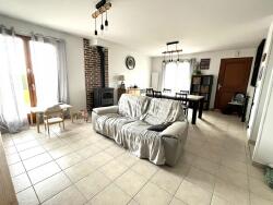 Dans un village du Vexin, au calme, Pavillon avec entrée, séjour salon avec poêle à bois, cuisine aménagée équipée, couloir desservant une chambre salle d'eau et wc indépendant, buanderie. A l'étage un palier/bureau avec dressing et deux grandes chambres. Chauffage électrique. Garage double. Terrain 1037 M2 clos.