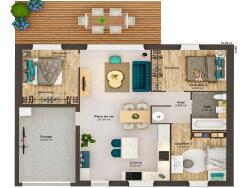 Cette maison de 3 chambres offre une superficie initiale de 71 m2 habitable avant agrandissement. Elle propose une pièce de vie de 34 m2 évolutive selon vos besoins et vos souhaits.