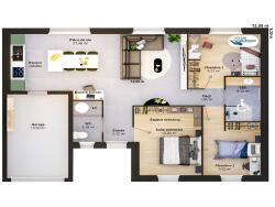 Cette maison de 3 chambres allie astucieusement besoins des clients, réglementation d'accessibilité PMR et coût de construction avantageux. Ses atouts ? Une grande pièce de vie, un espace bureau, un dressing, un garage... des espaces utiles au service des habitants. Ce plan compact a été pensé pour faciliter l'accès à la propriété avec un budget maîtrisé.
